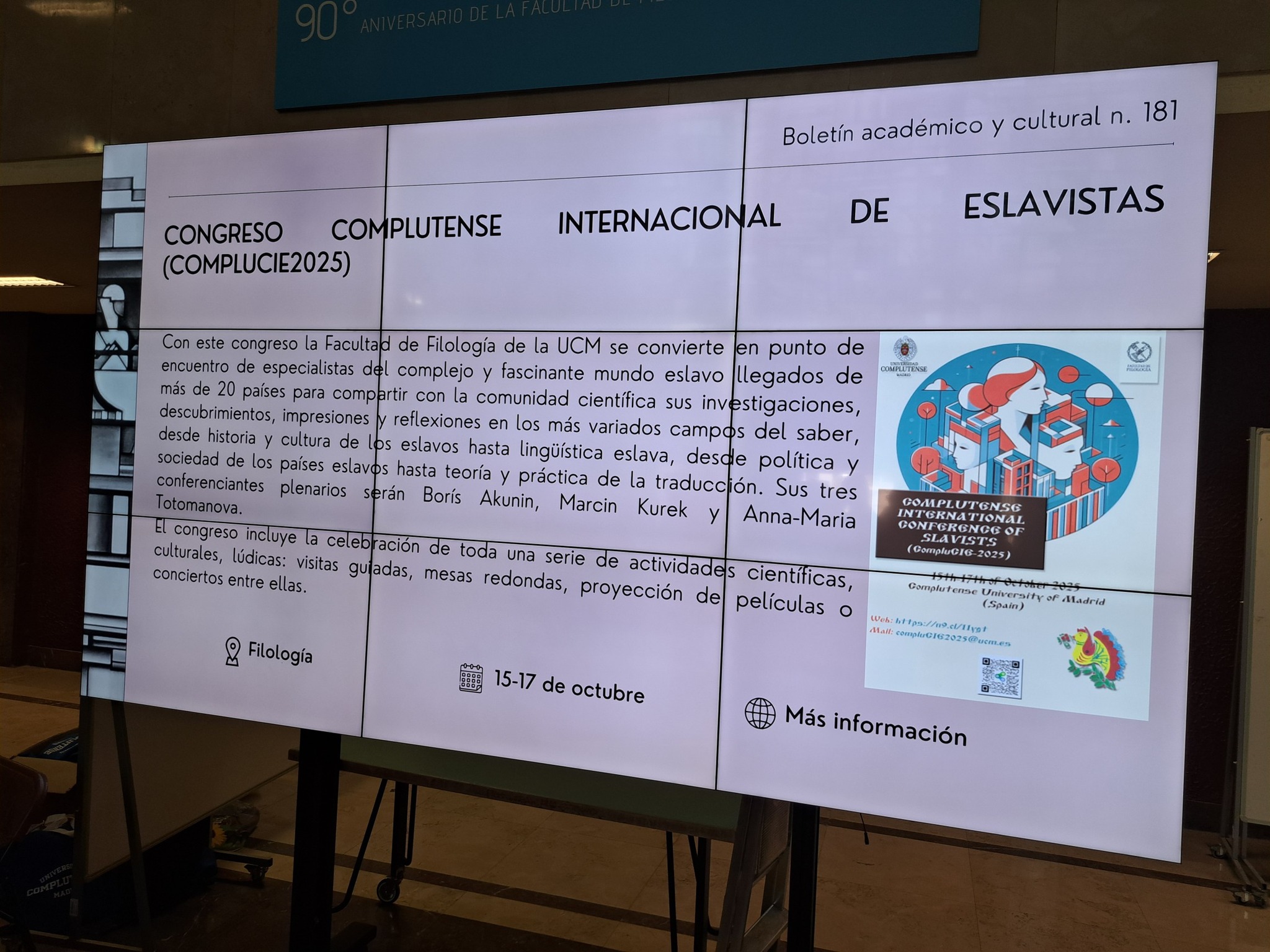 Pracownicy Katedry Białorutenistyki, dr K. Drozd-Urbańska i dr hab. Andriej Moskwin, prof. UW, uczestniczyli w międzynarodowej konferencji naukowej CompluCIG, która została zorganizowana przez Uniwersytet Complutense w Madrycie (Hiszpania).